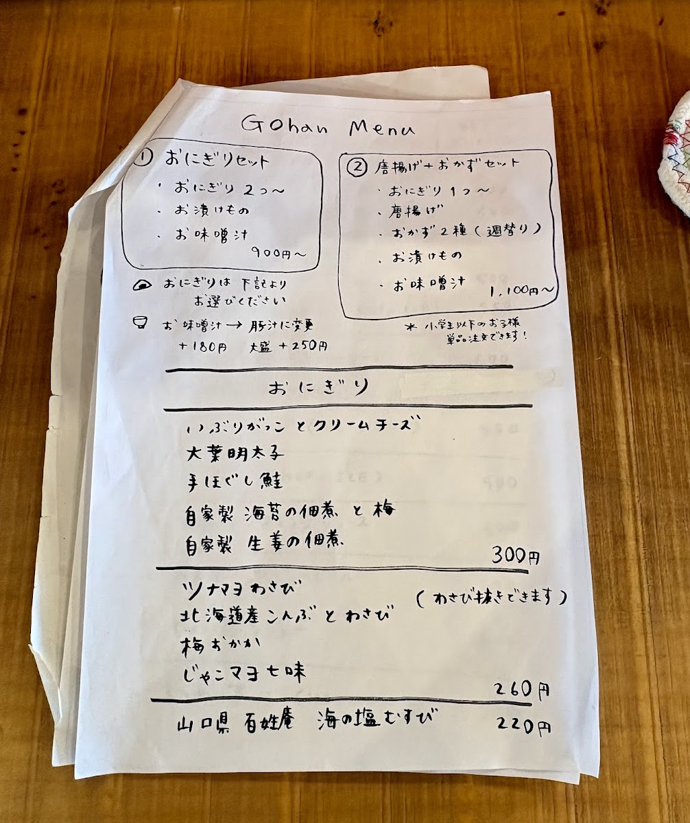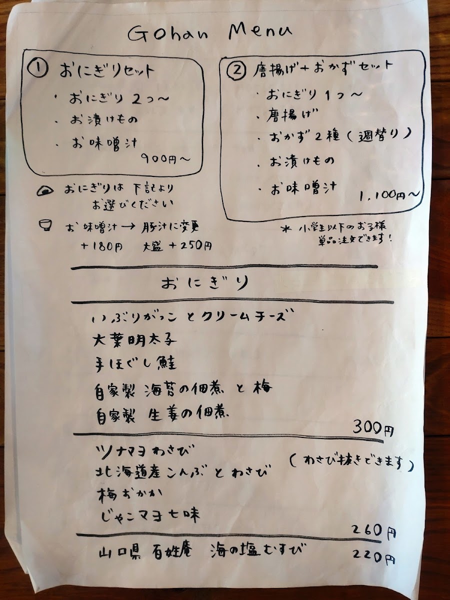 Onigiri Cafe YUNAGI Menu